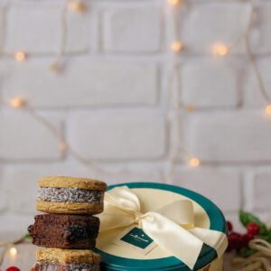 Lata com biscoito estrela de gingerbread banhado em chocolate